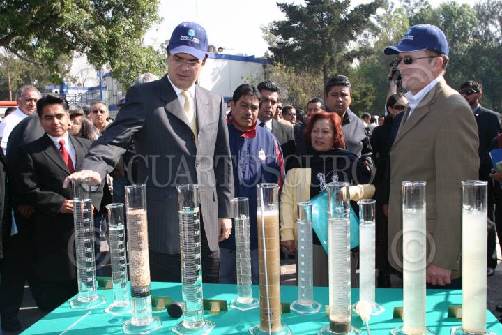 MÉXICO,D,F 13FENRERO2008.- Marcelo Ebrard jefe de Gobierno del D.F. asistió a la planta de tratamiento de aguas residuales del Cerro de la Estrella ubicada en la delegación Iztapalapa. FOTO: SAÚL LÓPEZ/CUARTOSCURO.COM