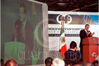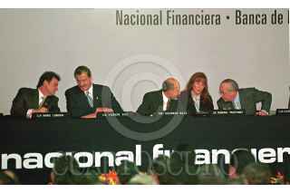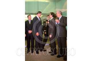 Mario Laborín conversa con el presidente Vicente Fox, mientras Eduardo Sojo, Yeickol Polevnsky y Claudio X. González hacen lo propio, en la inauguración del centro financiero de Nafin. FOTO: Victoria Valtierra/CUARTOSCURO.COM