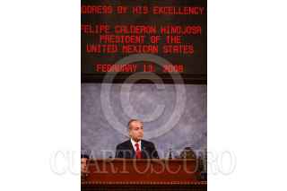 SACRAMENTO, CALIFORNIA., 13 FEBRERO2008.- El presidente Felipe Calderón durante la sesión conjunta en la Asamblea de California que tuvo lugar en el salón plenario del Capitolio estatal. FOTO: IMPERIO RESENDIZ/CUARTOSCURO.COM