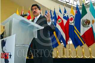 MÉXICO D.F., 18FEBRERO2008.- El presidente de la Organización Demócrata Cristiana de América, Manuel Espino, ofreció una conferencia para rechazar las declaraciones del embajador de Venezuela en México, Roy Chardeton, quien afirmó que el ex dirigente del PAN preparaba una orgía antichavista internacional. FOTO: ISAAC ESQUIVEL/CUARTOSCURO.COM