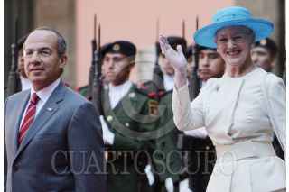 MÉXICO, D,F 18FEBREBRO2008.- El presidente de México, Felipe Calderón presidió el acto de bienvenida a la Reina Margrethe II de Dinamarca en Palacio Nacional. FOTO: SASHENKA GUTIERREZ/CUARTOSCURO.COM