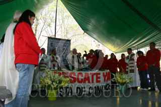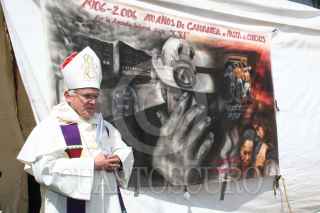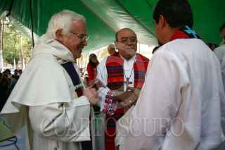 MÉXICO,D.F, 19FEBRERO2008.- Samuel Ruíz y Raúl Vela obispo de Coahuila durante la misa del segundo aniversario de los mineros de pasta de conchos. FOTO: SASHENKA GUTIERREZ/CUARTOSCURO.COM