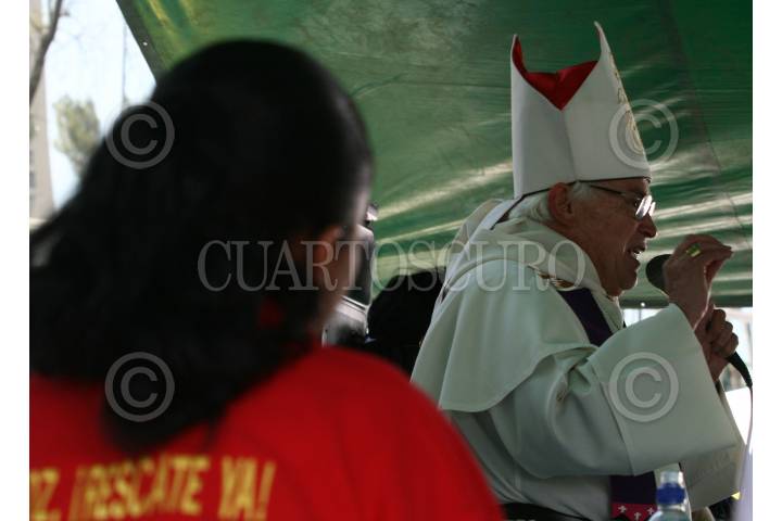 MÉXICO,D.F, 19FEBRERO2008.- Samuel Ruíz y Raúl Vela obispo de Coahuila durante la misa del segundo aniversario de los mineros de pasta de conchos. FOTO: SASHENKA GUTIERREZ/CUARTOSCURO.COM
