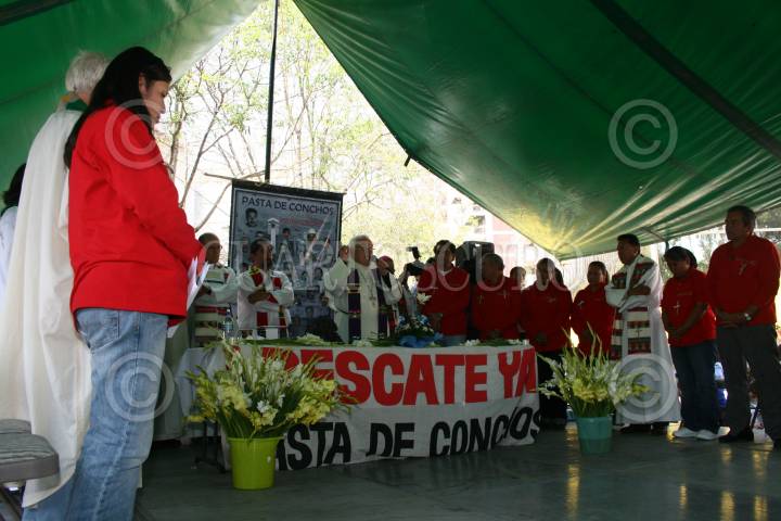 MÉXICO,D.F, 19FEBRERO2008.- Samuel Ruíz y Raúl Vela obispo de Coahuila durante la misa del segundo aniversario de los mineros de pasta de conchos. FOTO: SASHENKA GUTIERREZ/CUARTOSCURO.COM