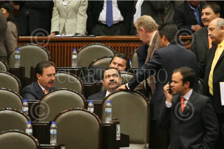 MÉXICO, D.F., 19FEBERO2008.- El senador Arturo Nuñez conversa con el senador Alberto Anaya durante la sesion ordinaria en el senado de la república. FOTO: CUARTOSCURO.COM