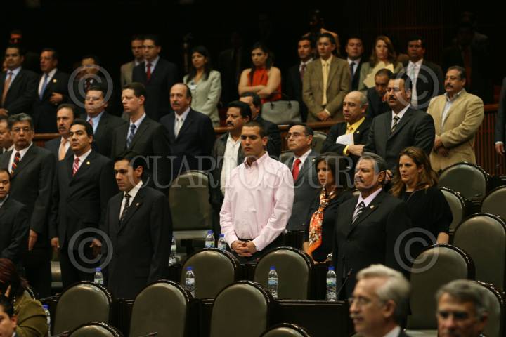 MÉXICO, D.F., 19FEBERO2008.- El senador Arturo Nuñez conversa con el senador Alberto Anaya durante la sesion ordinaria en el senado de la república. FOTO: CUARTOSCURO.COM