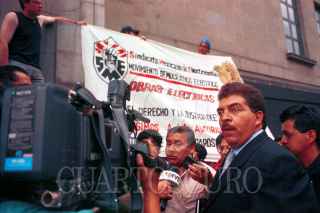 Angel Cedillo, integrante de la Unión de Trabajadores del CEN del PRD, informo que si no se cumplen sus peticiones de aumento salarial, boicotearan las elecciones de este domingo. FOTO: Victoria Valtierra/CUARTOSCURO.COM