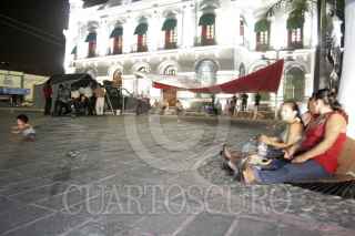 VILLAHERMOSA, TABASCO, 20FEBRERO2008.- Manifestantes que se inconforman por la nula ayuda por parte de las autoridades gubernamentales se plantaron en Palacio de Gobierno y hasta alta horas de esta madrugada aun permanecen ya que perdieron sus pertenencias en las pasadas contigencias por inundación. FOTO. MARCO POLO GUZMÁN HERNÁNDEZ/CUARTOSCURO.COM