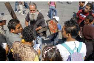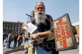 MÉXICO, D.F., 23FEBRERO2008.- Edward Andre Stagl, viaja por las calles del Zocalo Capitalino predicando la palabra del Señor y asuegurando que Jesus el Cristo Vive. FOTO: HERMES QUETZALCOATL/CUARTOSCURO.COM
