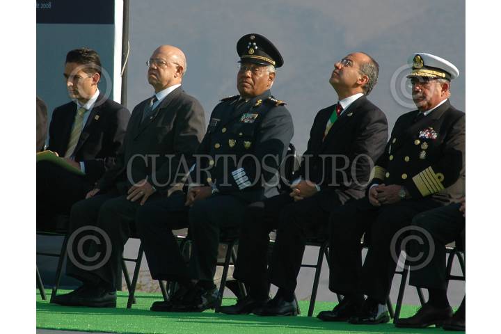IGUALA, GUERRERO; 24FEBRERO2008.- Juan Camilo Muriño, secretario de Gobernación saluda al presidente Felipe Calderón durante la Ceremonia del Día de la Bandera que se realizo en esta ciudad. FOTO: RODOLFO ANGULO/CUARTOSCURO.COM