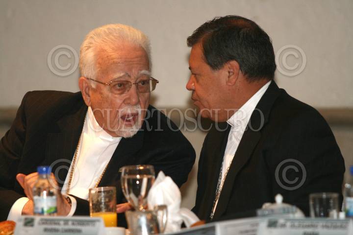 MÉXICO, D.F. 25FEBRERO2008.- El Cardenal Norberto Rivera saluda a la pri-ista Beatriz Pages durante la reunión de participación ciudadana de la PGR. FOTO: SASHENKA GUTIERREZ/CUARTOSCURO.COM