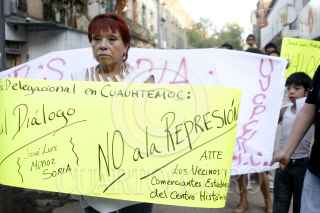 MÉXICO, D.F., 25FEBRERO2008.- Esta tarde, vecinos y comerciantes del centro histórico, marcharon para conseguir un diálogo con el jefe de la delegacion Cuauhtemoc, debido a que tuvieron problemas con elementos policiacos, quienes presuntamente usaron fuerza excesiva al clausurar un local. FOTO: URIEL ROLDÁN AGUILAR/CUARTOSCURO.COM
