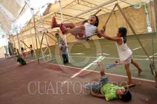 VILLAHERMOSA, TABASCO, 26FEBRERO2008.- A cinco meses de las contigencias por inundación, más de mil tabasqueños que resultaron damnificados permanecen en el albergue temporal de la unidad deportiva "Recreativo de Atasta". En el mencionado lugar juegan infantes y hacen su vida cotideana, sin embargo la mayoria de estas personas ya quieren retornar a lo que quedo de sus hogares. FOTO: MARCO POLO GUZMÁN HERNÁNDEZ/CUARTOSCURO.COM