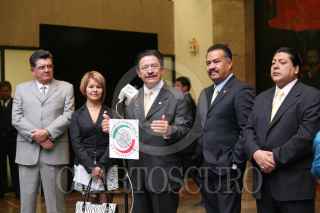 MÉXICO, D.F., 26FEBRERO2008.- Los senadores José Luis García Zalvidea, Minerva Hernández, Carlos Navarrete, Carlos Sotelo y Héctor Miguel bautista, ofrecieron una conferencia de prensa para pronunciarse que el GPPRD rechaza acciones de intolerancia, persecución y agresión a legisladores del PRD. FOTO: ISRAEL VERA/CUARTOSCURO.COM