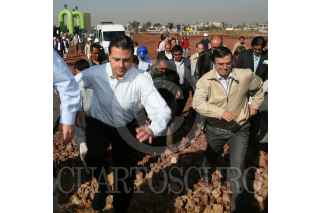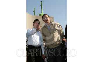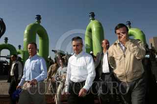 ECATEPEC EDO. MÉX. 26FEBRERO2008.-José Luis Lueje Tamargo director de CONAGUA, Enrique Peña Nieto, gobernador del Estado de México y Marcelo Ebrad Casaubon jefe del gobierno capitalino, realizaron la puesta en marcha de cuatro bombas en la Planta de Bombeo Casa Colorada. FOTO: GUILLERMO PEREA/CUARTOSCURO.COM