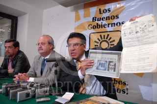 MÉXICO, D.F., 26FEBRERO2008.- Rafael Hernández, Graco Ramirez Abreu y Horacio Duarte, candidato a la Secretaría General del PRD Naciona,l presentaron diversas pruebas impresas y sonoras sobre irregularidades de la campaña de Alejandro Encinas. FOTO: GERMÁN ROMERO/CUARTOSCURO.COM