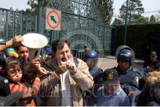 MÉXICO D.F., 01MARZO2008.- Gerardo Fernandez Noroña junto con algunos de sus seguidores llegaron a Los Pinos para entregar documentos de los padres del secretario de Gobernación Juan Camilo Muriño que son de nacionalidad española. FOTO: PEDRO MARRUFO/CUARTOSCURO.COM