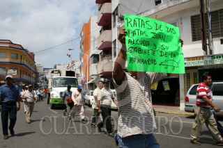 VILLAHERMOSA, TABASCO, 07MARZO2008.- Alrededor de mil empleados de limpia se manifestaron pacificamente por principales avenidas de la capital tabasqueña para hacer saber que su lider sindical es un corrupto. De la misma manera interrumpieron el trefico vehicular al llevar consigo las pesadas unidades de recolección de basura. FOTO: MARCO POLO GUMÁN HERNÁNDEZ/CUARTOSCURO.COM