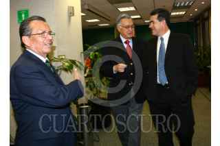 MÉXICO, D.F., 07MARZO2008.- Los políticos Heladio Ramírez, Manuel Bartlet y Diodoro Carrasco, durante la reunión del Frente Nacional de Legisladores del Sector Rural, realizada en la sede del Senado de la República. FOTO: IVÁN MENDEZ/CUARTOSCURO.COM