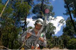 LA TRINIDAD, OAXACA, 07MARZO2008.- Apolonio Martínez es uno de los encargados de la comisión de seguridad de bosques de la Sierra Juarez de Oaxaca, mismo que vigila noche y dia que no entren particulares a talar árboles. Si así lo hicieran serian detenidos y juzgados por la asamblea de pueblos ya que aquí se rige la ley por usos y costumbres afirmo dicho guardian del bosque oaxaqueño. FOTO: SAÚL LÓPEZ ESCORCIA/CUARTOSCURO.COM