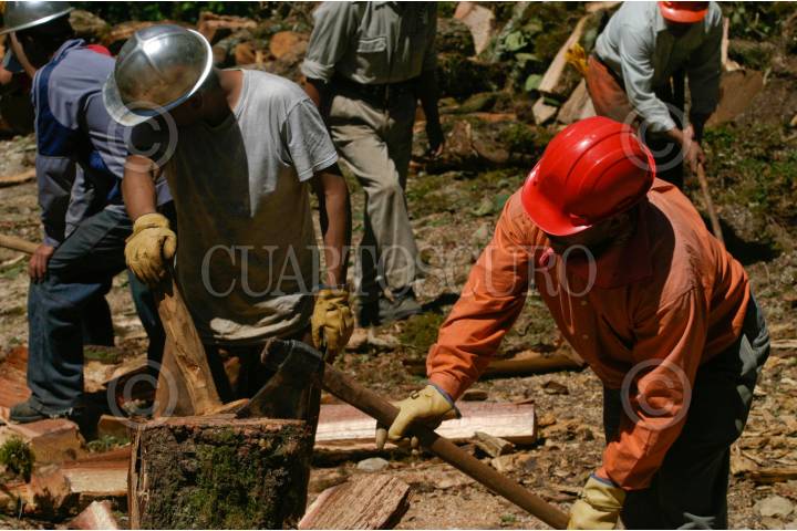 LA TRINIDAD, OAXACA, 07MARZO2008.- Aprovechadores forestales trabajan en la extracción de madera en la comunidad de la Trinidad, lugar donde solo se puede derribar árboles autorizados y adecuados para tala que no afectan los bosques de la entidad, esto ante un decreto oficial que solo autoriza la explotación de uso forestal para el bien de las comunidades, y no permite la utilización de recursos forestales para el interés de la industria privada. FOTO: SAÚL LÓPEZ ESCORCIA/CUARTOSCURO.COM
