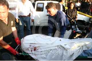 OAXACA,OAXACA 07MARZO2008.- El comandante de la Policía Ministerial Ricardo Rodríguez Silva, alias El Gigio, con placa 742, fue ejecutado esta tarde de varios impactos de arma de fuego, la balacera ocurrió alrededor de las cinco de la tarde sobre Avenida Juárez. FOTO: MAX NUÑEZ/CUARTOSCURO.COM