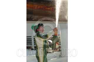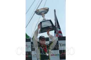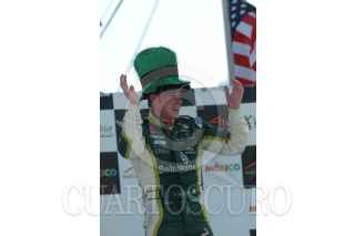 MEXICO, D.F., 16MARZO2008.- El irlándes Adam Carrol, festeja su triunfo en la carrera de inaugural del serial A1 Grand Prix, que se realizó en el Autodromo Hermanos Rodríguez. FOTO: IVÁN MENDEZ/CUARTOSCURO.COM