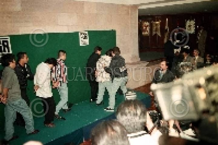 Presentación de la banda de secuestradores de Daniel Arismendi López "El Mochaorejas" en la PGR. Foto: German Romero/Cuartoscuro