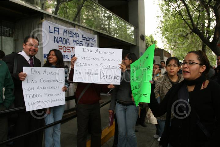 MÉXICO D.F. 24MARZO2008.-Medicos protestan en las instalaciones de la Secretaria de Salud por las condiciones para el examen de residencia. FOTO: GUILLERMO PEREA/CUARTOSCURO.COM