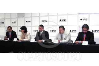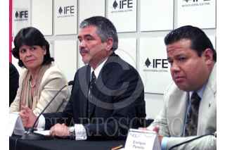 MÉXICO, D.F., 24MARZO2008.- Los consejeros del IFE Irma Gonzalez y Leonardo Valdez, así como Enrique Pereda presidente de la CIRT, ofrecieron una conferencia para dar a conocer que se creara un grupo de trabajo integrado por el IFE la CIRT y SEGOB que dara seguimiento a los spots en radio y television. FOTO: HERIBERTO PEREZ/CUARTOSCURO.COM
