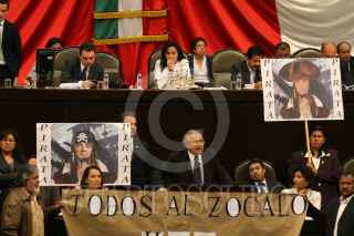 MÉXICO D.F. 25MARZO2008.-Diputados de la izquierda toman la tribuna durante la sesión donde se realizaba el posicionamiento en relación al día de la expropiación petrolera.En la imagen el diputado, Juan José Rodriguez Prats (PAN) al momento de tomara la palabra en la tribuna. FOTO: GUILLERMO PEREA/CUARTOSCURO.COM