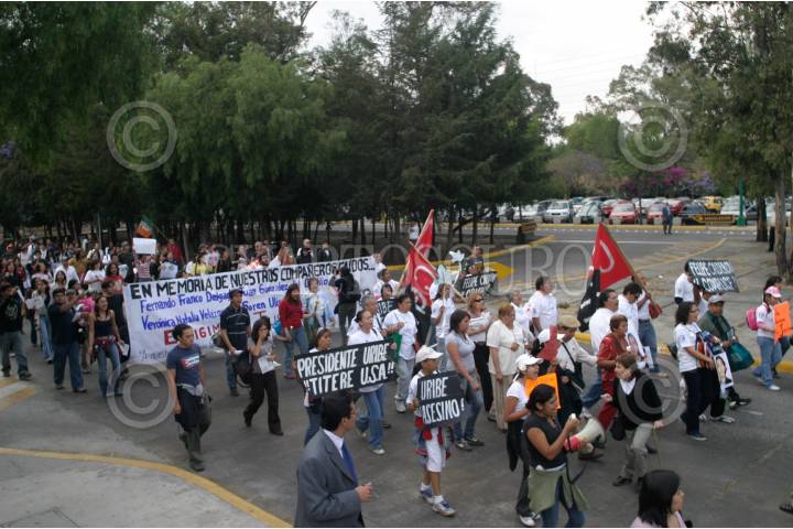 MÉXICO D.F. 25MARZO2008.-Alumnos de la facultad de Filosofia y Letras de la UNAM junto con padres de familias de los ex alumnos fallecidos durante un ataque a un campamento de las Fuerzas Armadas Revolucionarias de Colombia (FARC) en territorio ecuatoriano, realizaron una marcha por el circuito de ciudad universitaria. FOTO: SAÚL LÓPEZ/CUARTOSCURO.COM