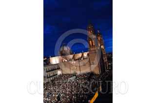 ZACATECAS, ZACATECAS, 25MARZO2008.-En el marco del XXII Festival Cultural Zacatecas 2008 hoy por la noche se presentó en la plaza de armas de la capital del estado el dios de la música Bob Dylan , ante miles de zacatecanos y visitantes que acudieron a escuchar el concierto. FOTO:CARLOS SEGURA/CUARTOSCURO.COM