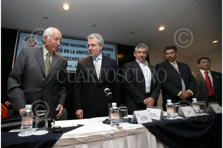 MEXICO, D.F., 26MARZO2008.- Se llevó acabo el segundo Foro Nacional de Legisladores, "México en la Unificación de los Derechos Indigenas", en el que participaron el presidente de la mesa directiva del senado de la república, Santiago Creel Miranda y el titular de la Comisión Nacional para el Desarrollo de los Pueblos Indigenas Luis H. Álvarez. FOTO:CUARTOCURO.COM