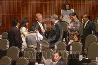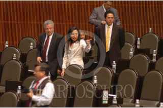 MÉXICO D.F. 26MARZO2008.-Los diputados Ruth Zavaleta y el diputado Elejandro Sanchez (PRD) durante la sesión en la Cámara de Diputados. FOTO: GUILLERMO PEREA/CUARTOSCURO.COM