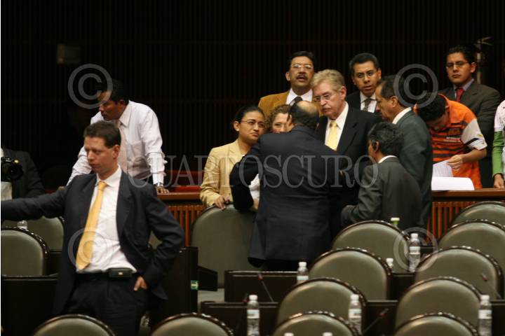 MÉXICO D.F. 26MARZO2008.-Los diputados Ruth Zavaleta y el diputado Elejandro Sanchez (PRD) durante la sesión en la Cámara de Diputados. FOTO: GUILLERMO PEREA/CUARTOSCURO.COM
