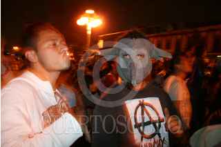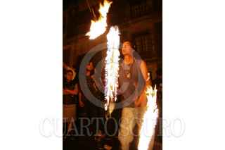 MÉXICO, D.F.,30MARZO2008.-Entre colorida pirotecnia y un performance espectacular, a cargo de Homo Ludens, se realizó la Quinta Noche de Primavera, que reunió varias disciplinas artísticas y culturales en distintos puntos y recintos del Centro Histórico. FOTO: RICARDO CASTELAN /CUARTOSCURO.COM,