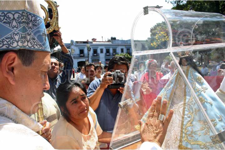 OAXACA, OAXACA 30MARZO2008.- El arzobispo Jose Lus Chavez Botello, encabezo la misa y la despedida de la peregrinacion de sus virgenes de La Soledad y de Juquila, donde el pueblo de municipios cercanos transportaran a la virgen a sus iglesias respectivas, una en la Iglesia de la Soledad en el centro y otra en Santa Maria Juquila adelante de Sola de Vega. FOTOS: MAX NUÑEZ/CUARTOSCURO.COM