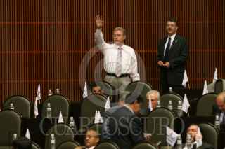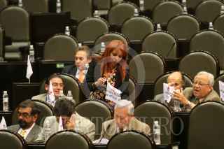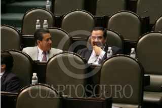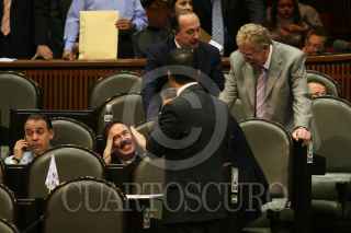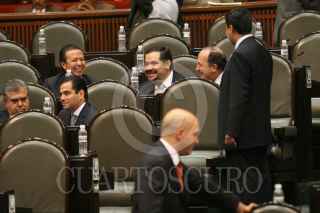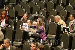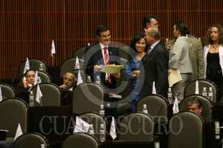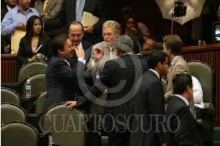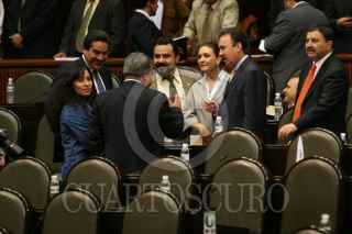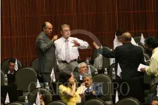 MÉXICO D.F. 01ABRIL2008.-Sesión ordinaria en la Cámara de Diputados, donde se llevaron acabo los comentarios sobre el caso del Secretario de Gobernación Juan Camilo Mouriño Terraza.En la imagen la diputada Ruth Zavaleta (PRD), dialoga con diputados del PRI durante la sesión entre ellos Emilio Gamboa Patrón. FOTO: GUILLERMO PEREA /CUARTOSCURO.COM