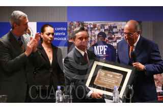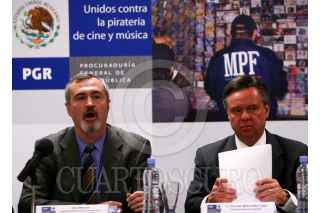 MÉXICO, D.F., 01ABRIL2008.- John Malcolm, vicepresidente ejecutivo y director de operaciones internacionale anti-piratería de la Motion Picture Association y Eduardo Medina Mora, Procurador General de la República, anunciaron a conocer la creación de la Asociación Protectota de Cine y Música de México A.C., unidas para combatir la piratería física y la de internet, durante una conferencia de prensa en la sede de la PGR. FOTO: MOISÉS PABLO/CUARTOSCURO