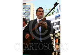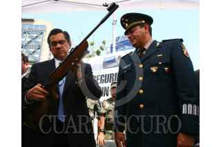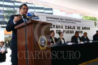 MÉXICO, D.F., 01ABRIL2008.- Joel Ortega, Secretario de Seguridad Pública y el teniente brigadier Alfonso Duarte Mujica, encabezaron la ceremonia de canje de armas de fuego, organizdo en conjunto con la SEDENA, en la Glorieta de los Insurgentes. FOTO: MOISÉS PABLO/CUARTOSCURO
