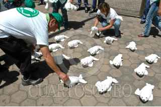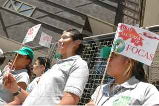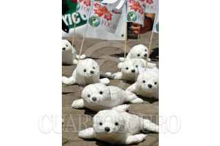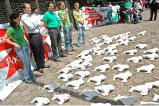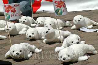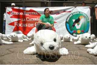 MÉXICO D.F., 02ABRIL2008.- Miembros del Partido Verde Ecologista de México se manifestaron a las afueras de la embajada de Canadá por la reciente temporada de cacería de focas en donde la matanza de los cachorros es a palos o con garrotes y son excesivamente crueles. FOTO: RODOLFO ANGULO/CUARTOSCURO.COM
