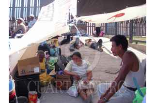 CHILPANCINGO, GUERRERO 09ABRIL2008.,- Campesinos e indigenas provenientes de varias comunidades de la montaña, costa grande y costa chica del estado pertenecientes a diversas ONGS como el Movimiento Socialista de la Sierra del Sur (MSSS) Frente de Defensa Popular (FDP) Frente Popular Francisco Villa (FPFV) entre otras, durante el planton que realizaron afuera del palacio de gobierno por segundo dia consecutivo para exigir al gobernador del estado Zeferino Torreblanca Galindo la entrega de mas de 4 mil toneladas de fertilizante. FOTO: OSCAR ALVARADO/CUARTOSCURO.COM