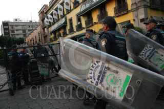 MÉXICO D.F. 09ABRIL2008.-Elementos de la secretaria de seguridad pública del D.F. aumentan la seguridad de las instalaciones del Senado de la República. FOTO: GUILLERMO PEREA / CUARTOSCURO.COM