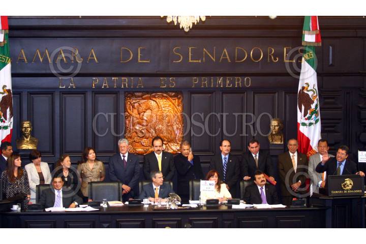 MÉXICO, D.F., 10ABRIL2008.- Los senadores Jesús Murillo Karam, Manlio Fabio Beltrones, coordinador de los senaodes del PRI y Santiago Creel, Presidente de la Mesa Directiva del Senado, discuten sobre el curso de la sesión luego de que la tribuna fuera tomada por los senadores del Frente Amplio Progresista. FOTO: IGANCIO GONZÁLEZ/CUARTOSCURO.COM