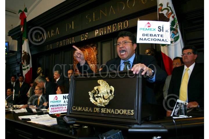 MÉXICO, D.F., 10ABRIL2008.- Los senadores Jesús Murillo Karam, Manlio Fabio Beltrones, coordinador de los senaodes del PRI y Santiago Creel, Presidente de la Mesa Directiva del Senado, discuten sobre el curso de la sesión luego de que la tribuna fuera tomada por los senadores del Frente Amplio Progresista. FOTO: IGANCIO GONZÁLEZ/CUARTOSCURO.COM