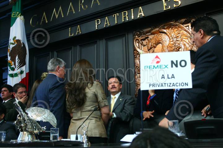 MÉXICO, D.F., 10ABRIL2008.- Los senadores Jesús Murillo Karam, Manlio Fabio Beltrones, coordinador de los senaodes del PRI y Santiago Creel, Presidente de la Mesa Directiva del Senado, discuten sobre el curso de la sesión luego de que la tribuna fuera tomada por los senadores del Frente Amplio Progresista. FOTO: IGANCIO GONZÁLEZ/CUARTOSCURO.COM