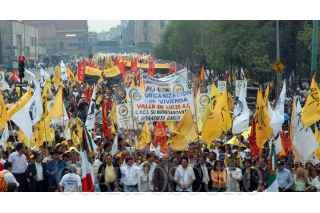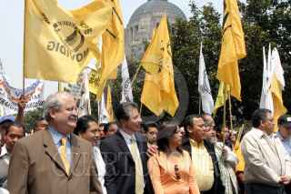 MÉXICO, D.F., 15ABRIL2008.- Jesús Ortega Martínez, candidato a la presidencia nacional del PRD, acompañado de asambleistas, diputados, senadores perredistas y líderes de organizaciones sociales, realizaron una marcha contra las propuestas privatizadoras de Pemex. FOTO: ISAAC RECODER/CUARTOSCURO.COM