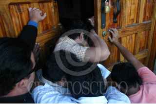 OAXACA, OAXACA 15ABRIL2008.- El Consejo Universitario aprobo que el Consejo Técnico de la Facultad de Medicina de la UABJO, recabe las propuestas que apoyan que los estudiantes de primer año que hayan reprobado materias en el primer año, afuera de las instalaciones un grupo de 50 estudiantes demandaban no se aplicará el nuevo reglamento que establece que quienes reprueben por tercera ocasión ya no podrán continuar sus estudios. Cuando se realizaba la sesion Alejandro Paz López, quien fuera director de la facultad de derecho, penetró por la fuerza junto con sus simpatizantes ahí se confrotó verbalmente con el rector de la Universidad Autonóma Benito Juárez de Oxaca, quien al finalizar los trabajos del consejo señalo que el espera se resuelvan los problemas internos de la facultad de derecho FOTO: MAX NUÑEZ/CUARTOSCURO.COM