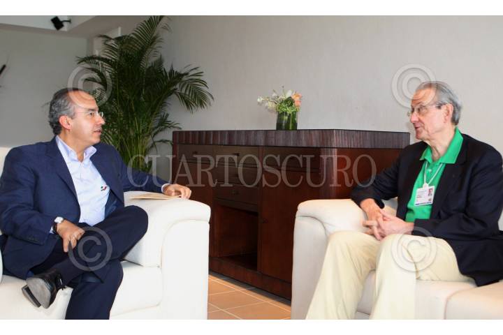 CANCUN, QUINTANA ROO., 15ABRIL2008. El presidente de México Felipe Calderón Hinojosa durante la reunión con el primer ministro de Trinidad y Tobago Patrick Maninn. FOTO: ALFREDO GUERRERO/CUARTOSCURO.COM